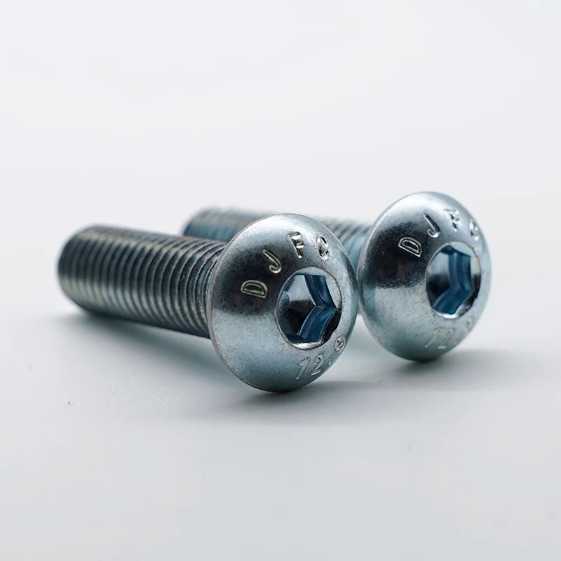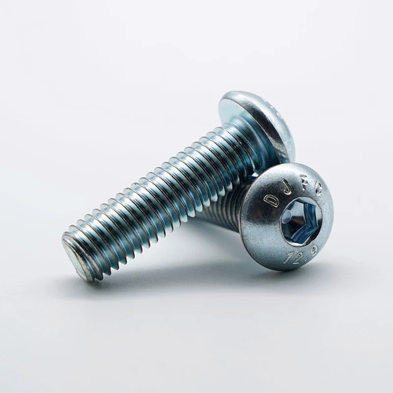 Il processo di elettrogalvanizzazione utilizzato per le viti a testa tonda con esagono incassato zincate consiste nel controllare con precisione la deposizione dello strato di zinco attraverso corrente elettrica a bassa temperatura per garantire un rivestimento uniforme e una superficie liscia. Ha un effetto minimo sulle proprietà meccaniche del substrato ad alta resistenza di grado 12,9, evitando efficacemente il rischio di infragilimento da idrogeno. Non altera le dimensioni del pezzo ed è particolarmente indicato per assemblaggi di precisione e successive esigenze di verniciatura. Rispetto alla zincatura a caldo, la zincatura elettrolitica ha un aspetto più delicato, un controllo dimensionale più preciso ed è più adatta per parti standard di livello industriale. Il grado 12.9 rappresenta un grado di resistenza ultraelevata e la sua resistenza alla trazione e allo snervamento superano di gran lunga quelle delle normali viti in acciaio al carbonio o acciaio inossidabile. Allo stesso tempo conferisce alle viti un'ottima resistenza a trazione, taglio e fatica, ed è particolarmente indicato per condizioni di lavoro gravose con carichi pesanti, carichi d'urto o vibrazioni continue. Presenta vantaggi significativi nelle applicazioni che richiedono un precarico elevato per garantire l'affidabilità della connessione.